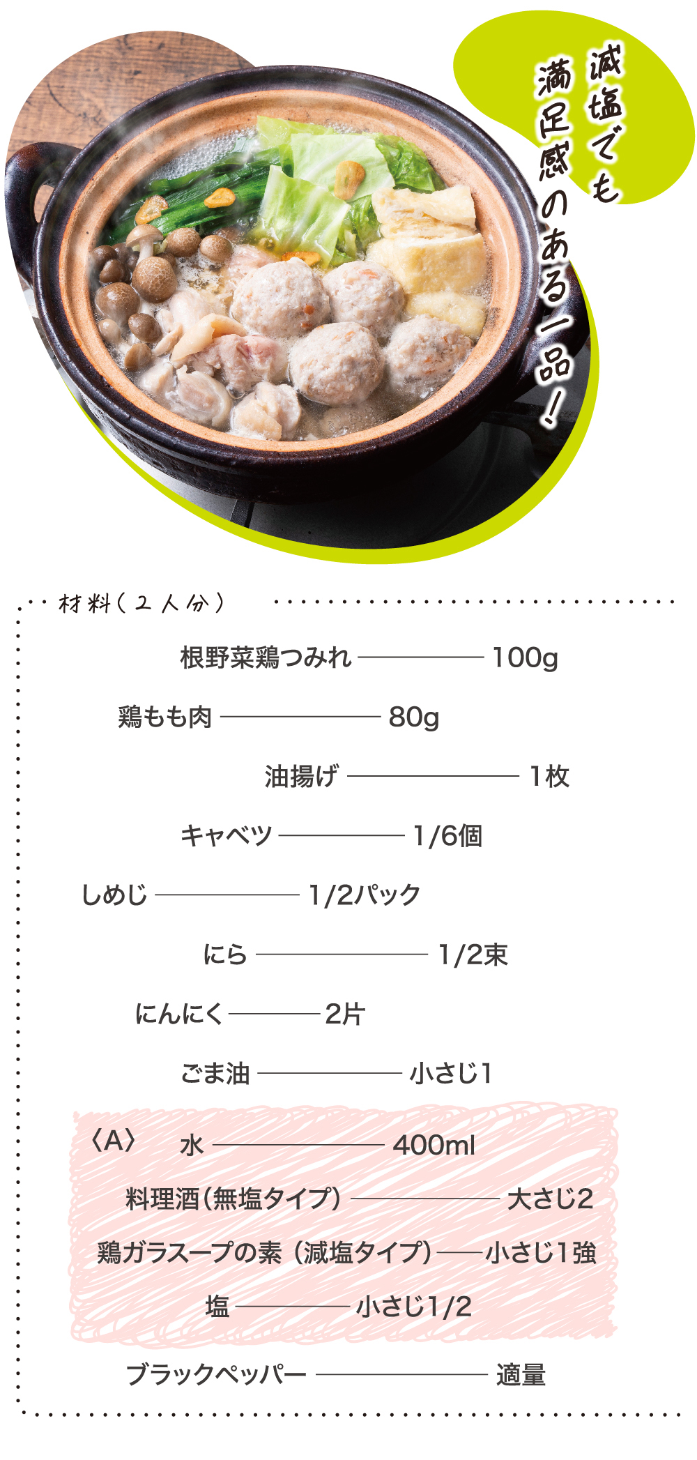 鶏つみれのガーリック塩ちゃんこ
