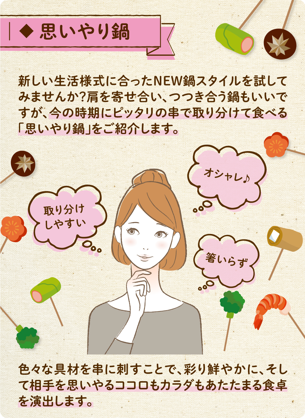 海鮮の出汁が効いたおいしさでカラダも元気になる海鮮串なべでココロもカラダもあたたかく。