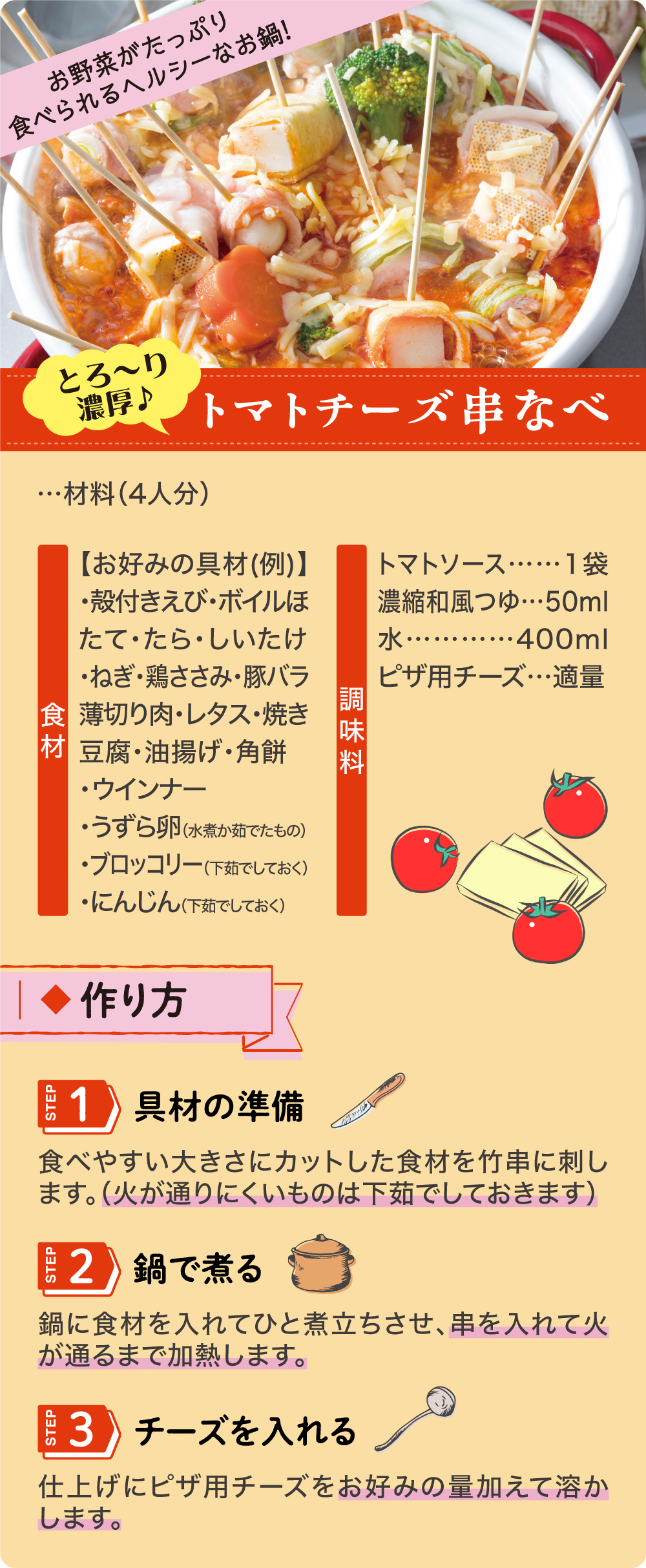 女性にも人気!見た目もかわいいオシャレ鍋で温まろう!NEW鍋スタイルのトマトチーズ串なべ!