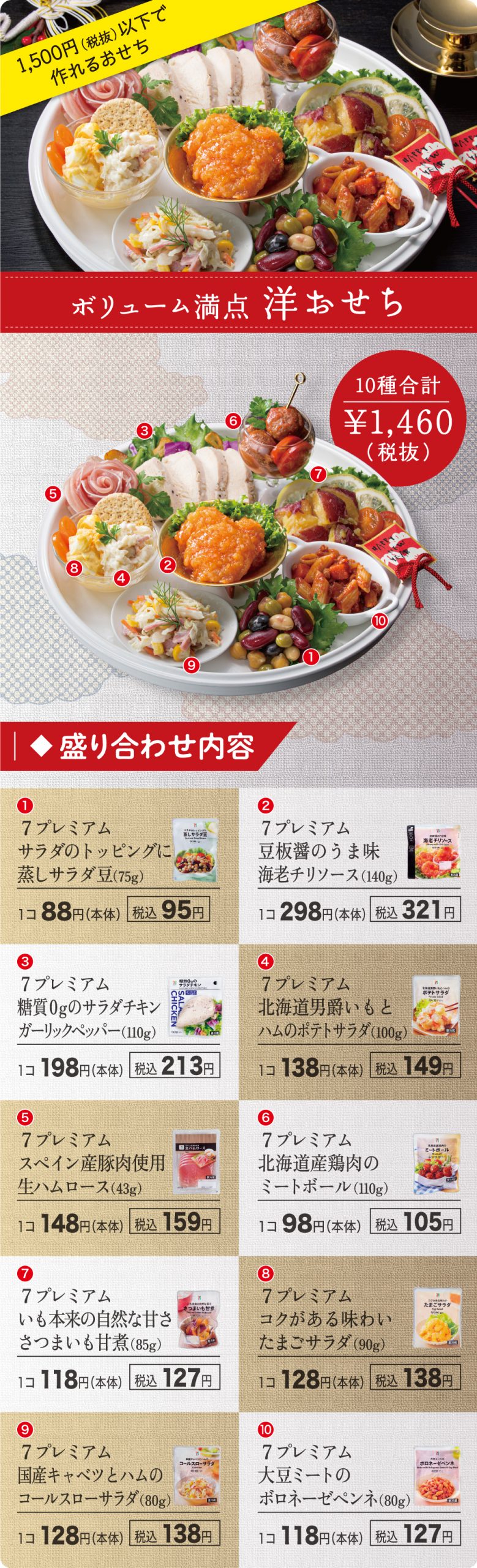 育ち盛りのお子様にもおすすめ、動物性と植物性のたんぱく質をバランスよく摂れる組み合わせの7プレミアム商品で作るおせちをご紹介します。