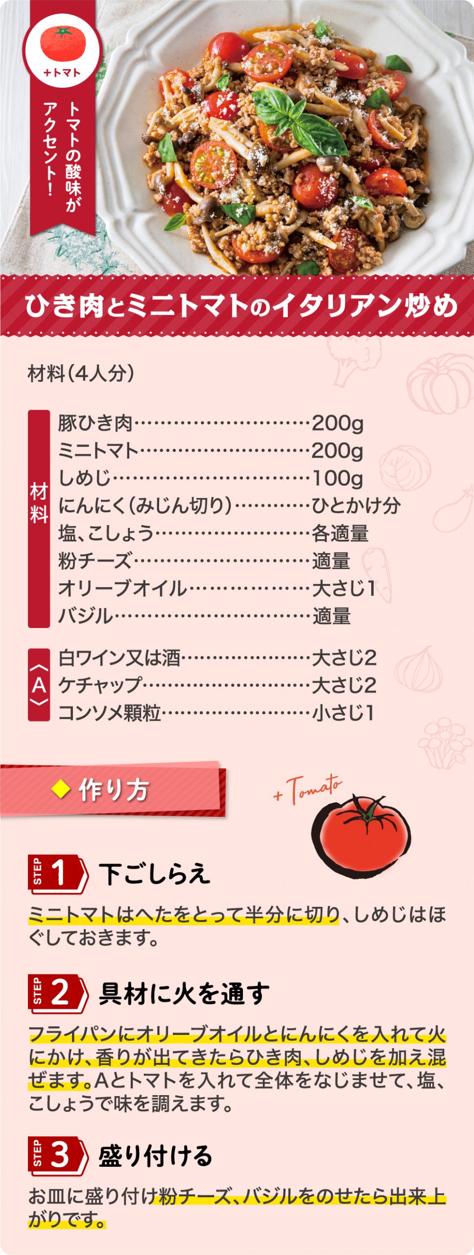 ごはんがすすむ一品!ひき肉とミニトマトのイタリアン炒めをご紹介♪