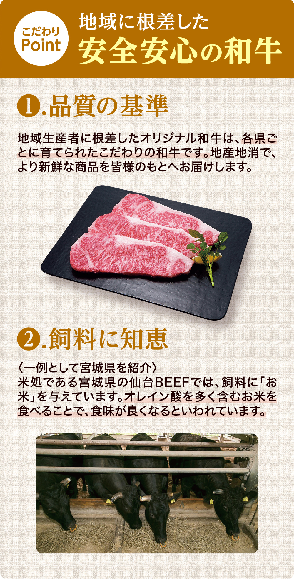 ヨークベニマルの和牛は品質はもちろん、飼育方法や飼料にもこだわっています。そんな黒毛和牛のこだわりポイントをご紹介します!
