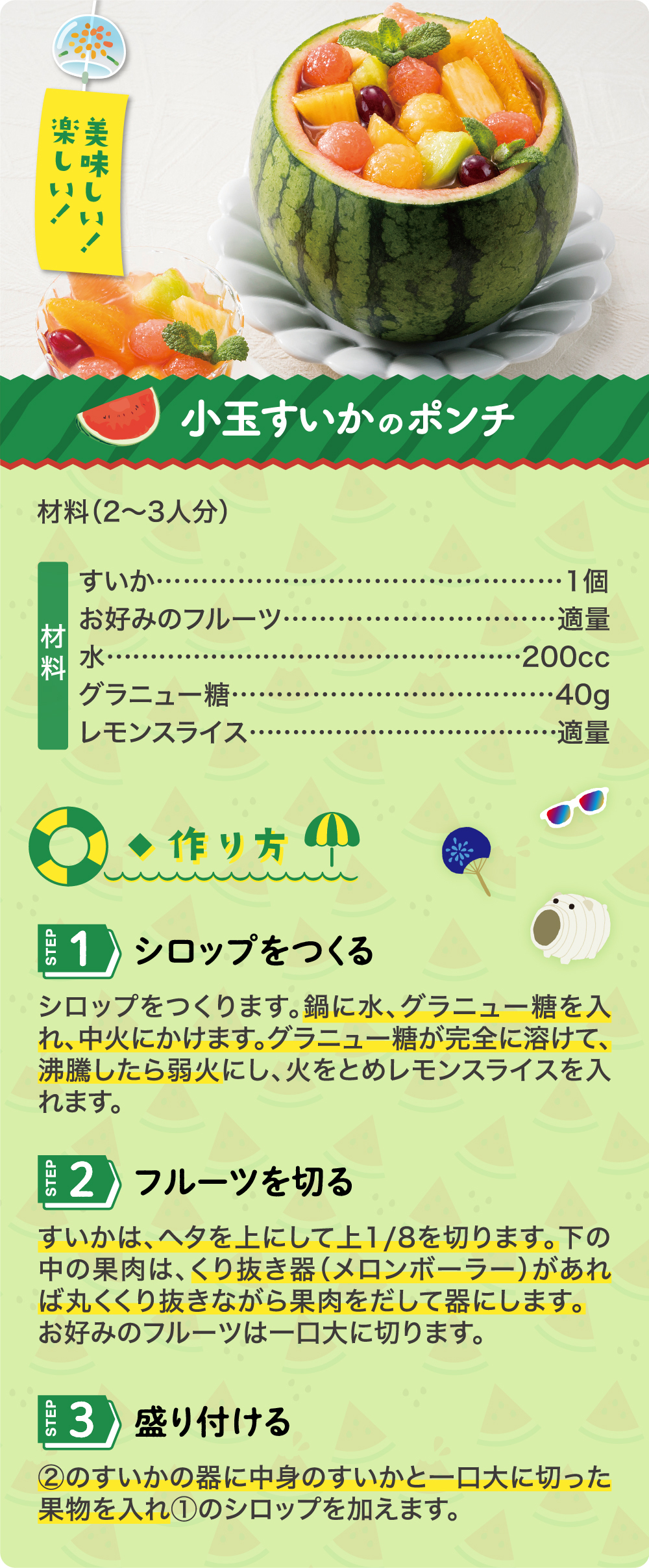 お好みのフルーツと一緒に♪ 「小玉すいかのポンチ」