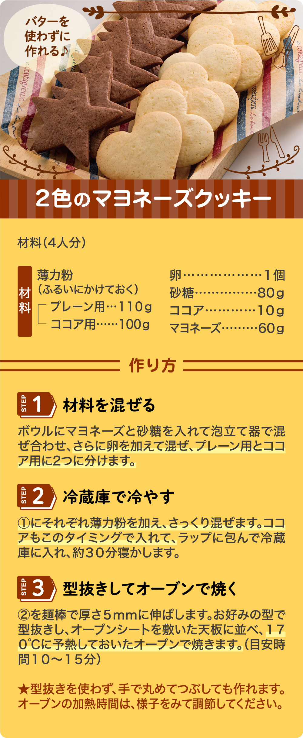 バターの代わりにマヨネーズ♪「2色のマヨネーズクッキー」
