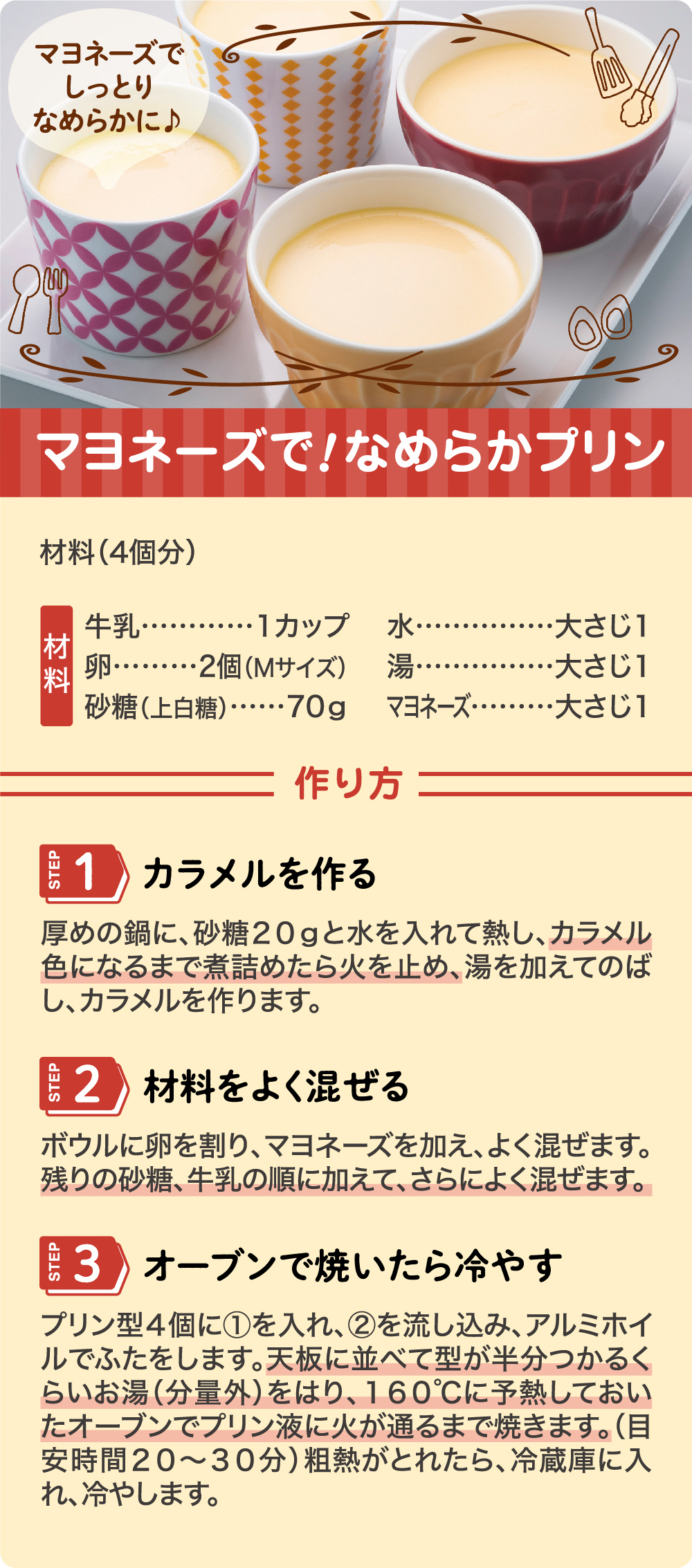 マヨネーズでしっとり♪「マヨネーズで!なめらかプリン」