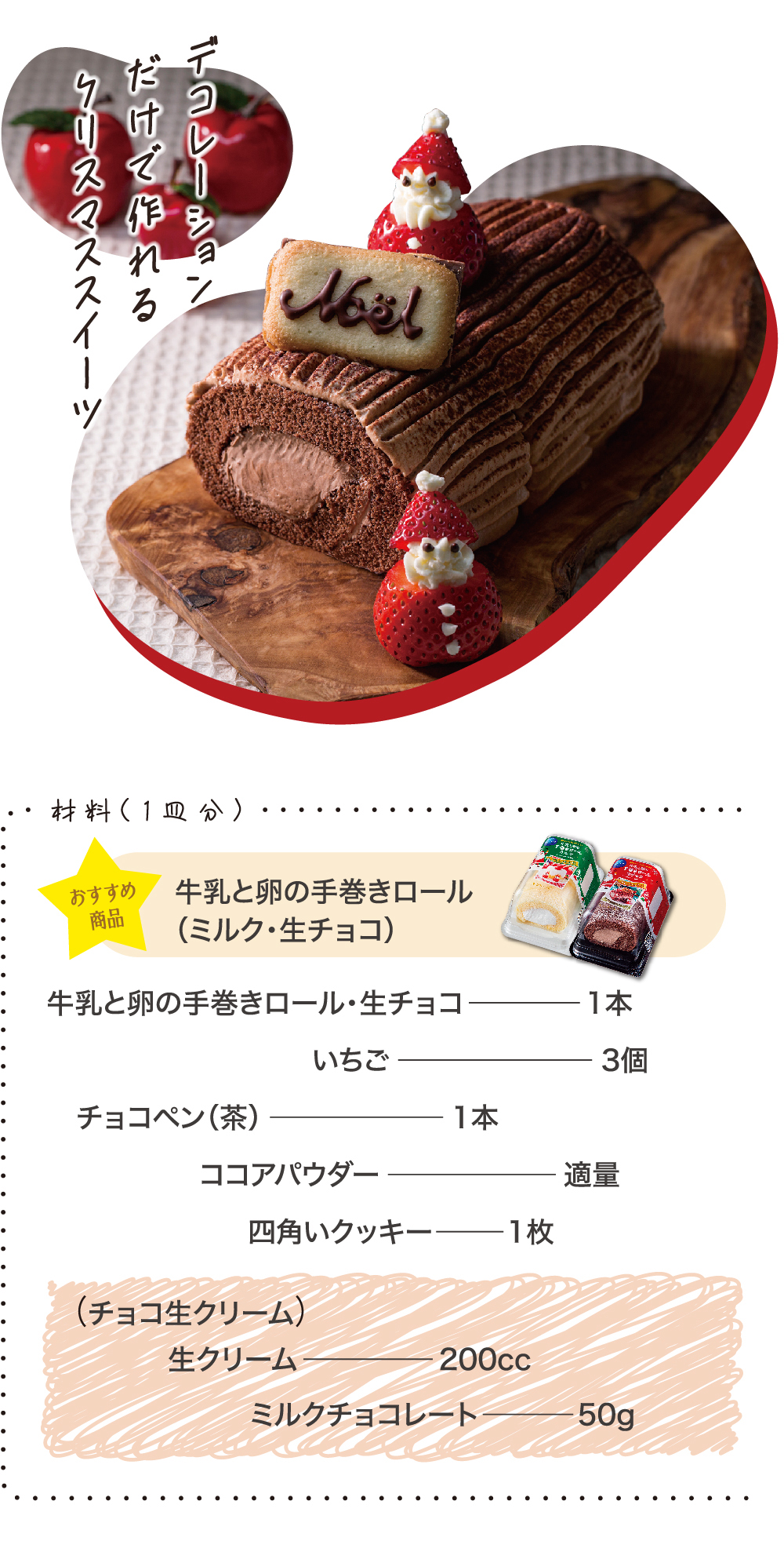 市販のロールケーキで作る簡単ブッシュ・ド・ノエル
