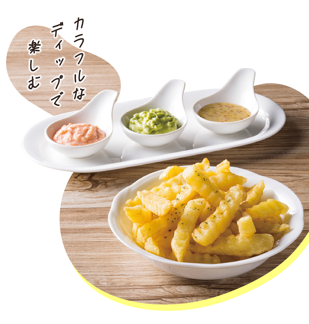 3種のディップで食べるフライドポテト