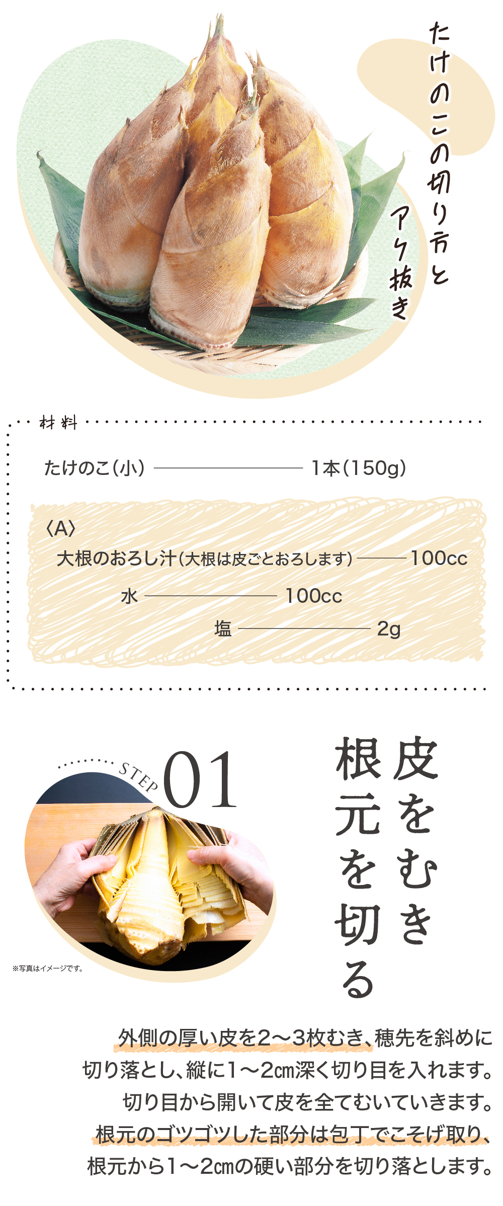 たけのこの切り方とアク抜き