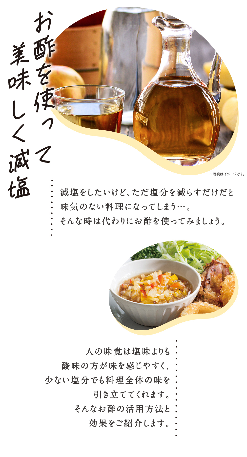 お酢を使って美味しく塩分を減らしていく