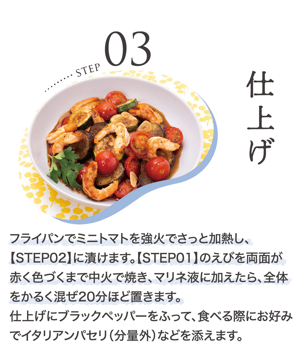 えびと夏野菜の黒酢マリネ