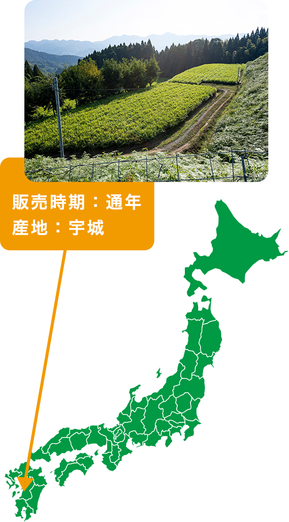 主に宇城地区(小川町および豊野町の中山間地域)で栽培されており、標高20mから150mの範囲で山の傾斜に沿う形で、清らかで豊富な地下水を使用し栽培しております。